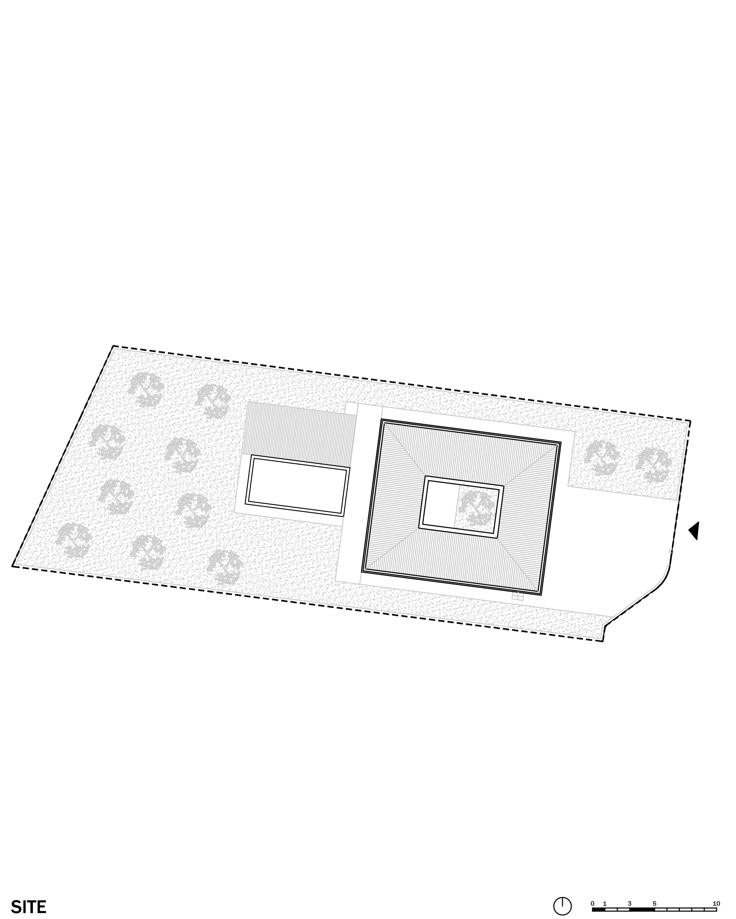 U središtu tog osnovnog volumena formiran je otvor za stablo masline, što omogućava da maslina bude vidljiva iz svakog kutka kuće, dok istovremeno osigurava ravnomjeran prodor sunčeve svjetlosti u sve prostorije objekta.