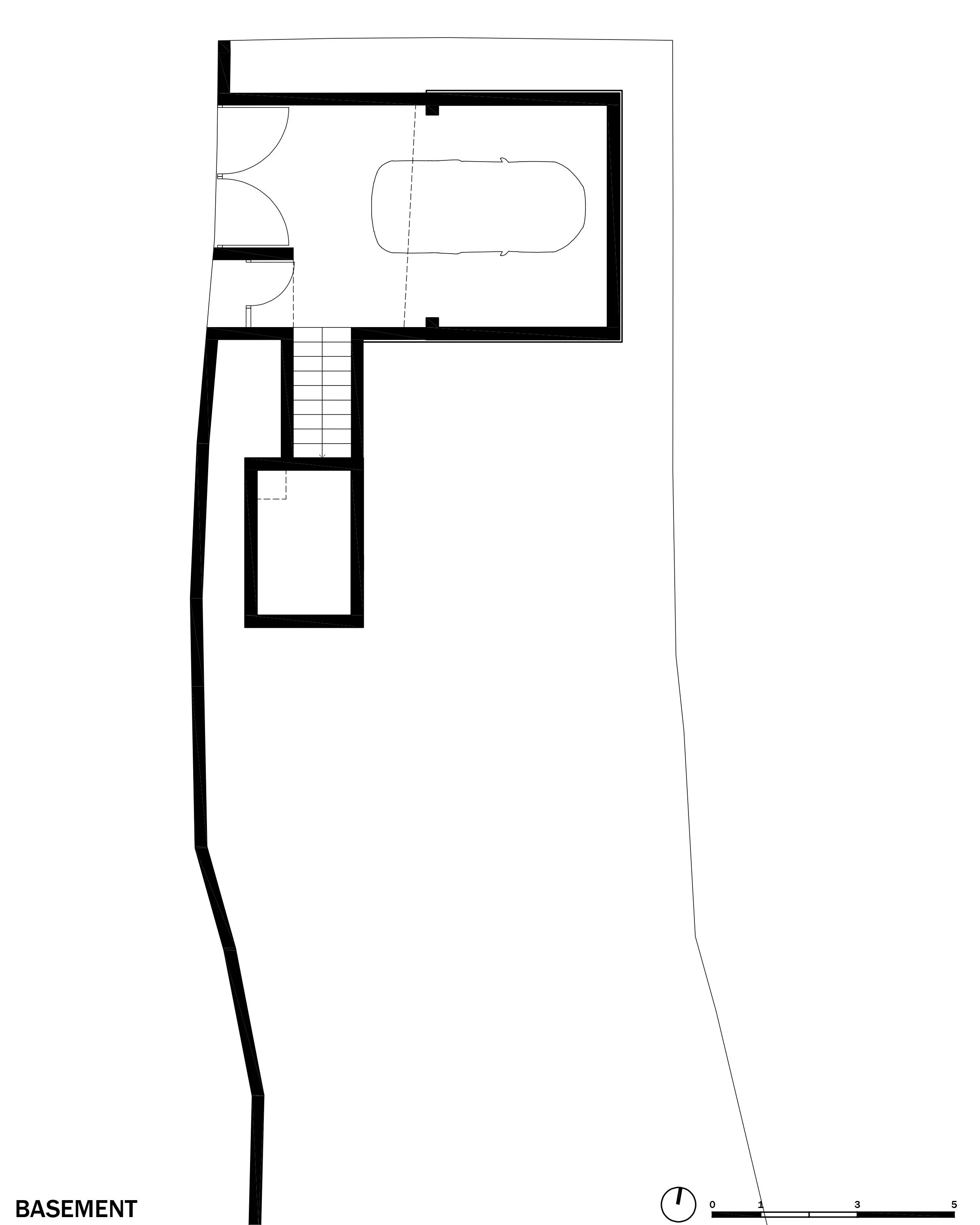 Zbog ograničenih dimenzija parcele, uvođenje podzemne etaže pokazalo se nužnim rješenjem za elegantno integriranje kolnog i pješačkog prilaza. Ova etaža omogućuje funkcionalnu organizaciju prostora, gdje je parking i servisni dio objekta odvojen od glavnih stambenih dijelova, stvarajući jasan katni razmak između tehničkih i životnih zona. Time se osigurava nesmetana funkcionalnost, dok se svakodnevni život odvija u miru iznad.